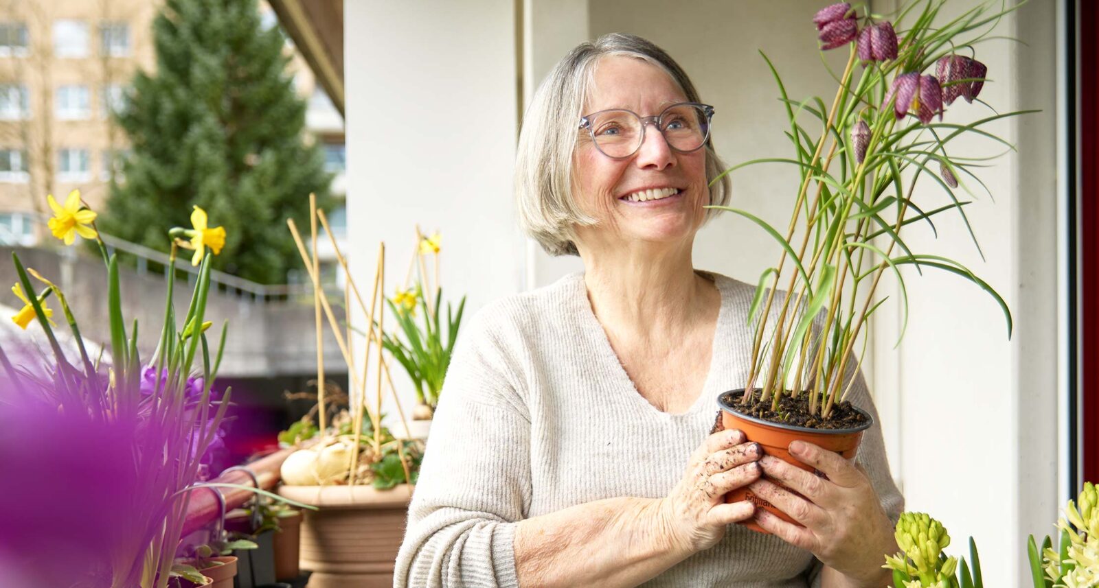 Katherine Flück wohnt in der SAW-Siedlung Mittelleimbach. Mit ihrer Wohnung, der Siedlung und der Nachbarschaft ist sie glücklich. « Wir schauen aufeinander. Wenn jemand ins Spital oder Pflegeheim muss, dann besuchen wir uns », sagt sie. Sie führt ein aktives Leben, macht Sport, besucht Kultur-Veranstaltungen und pflegt ihre Balkon-Pflanzen. « Gerade weil ich früher alles nicht durfte, geniesse ich es heute umso mehr », sagt sie.