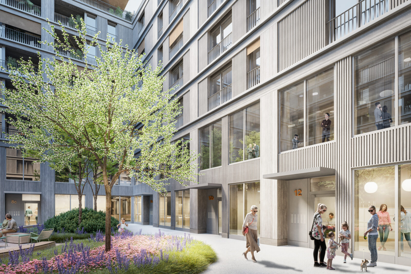 Rund um die S-Bahn-Station Manegg liegt das Quartier Greencity. Mittendrin: der Manegghof, ein ökologischer Vorzeigebau mit Gewerbeflächen und 179 Alterswohnungen. 60 davon vermietet die Stiftung Alterswohnungen der Stadt Zürich (SAW). Der Bezug ist für Herbst 2026 geplant.